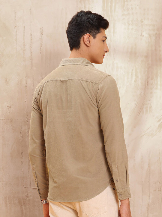 Men Solid Spread Collar Pure Cotton Casual Shirt